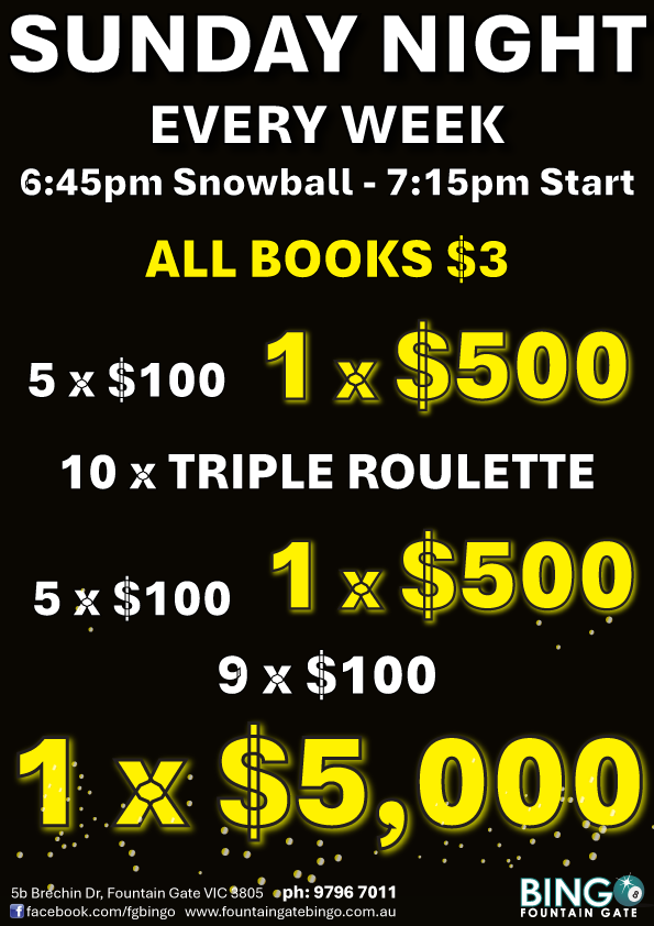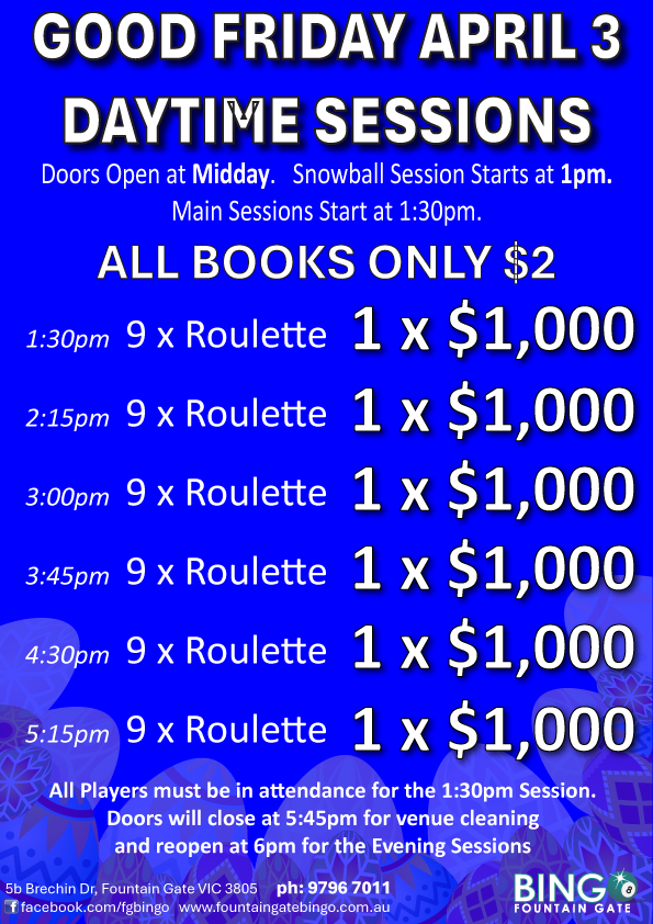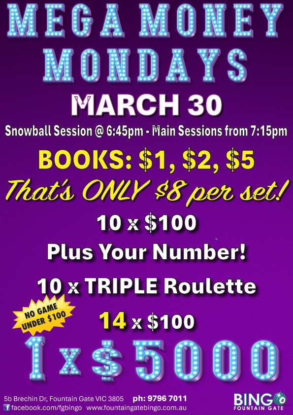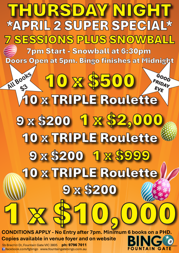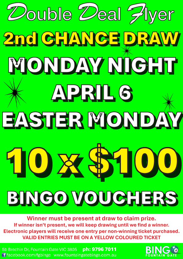 Fountain Gate Bingo. 5b Brechin Drive, Fountain Gate, 3805. Tel: 9796 7011